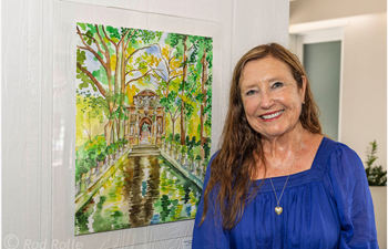 Mashek is displaying her vibrant watercolor paintings at the Santa Barbara Tennis Club (2375